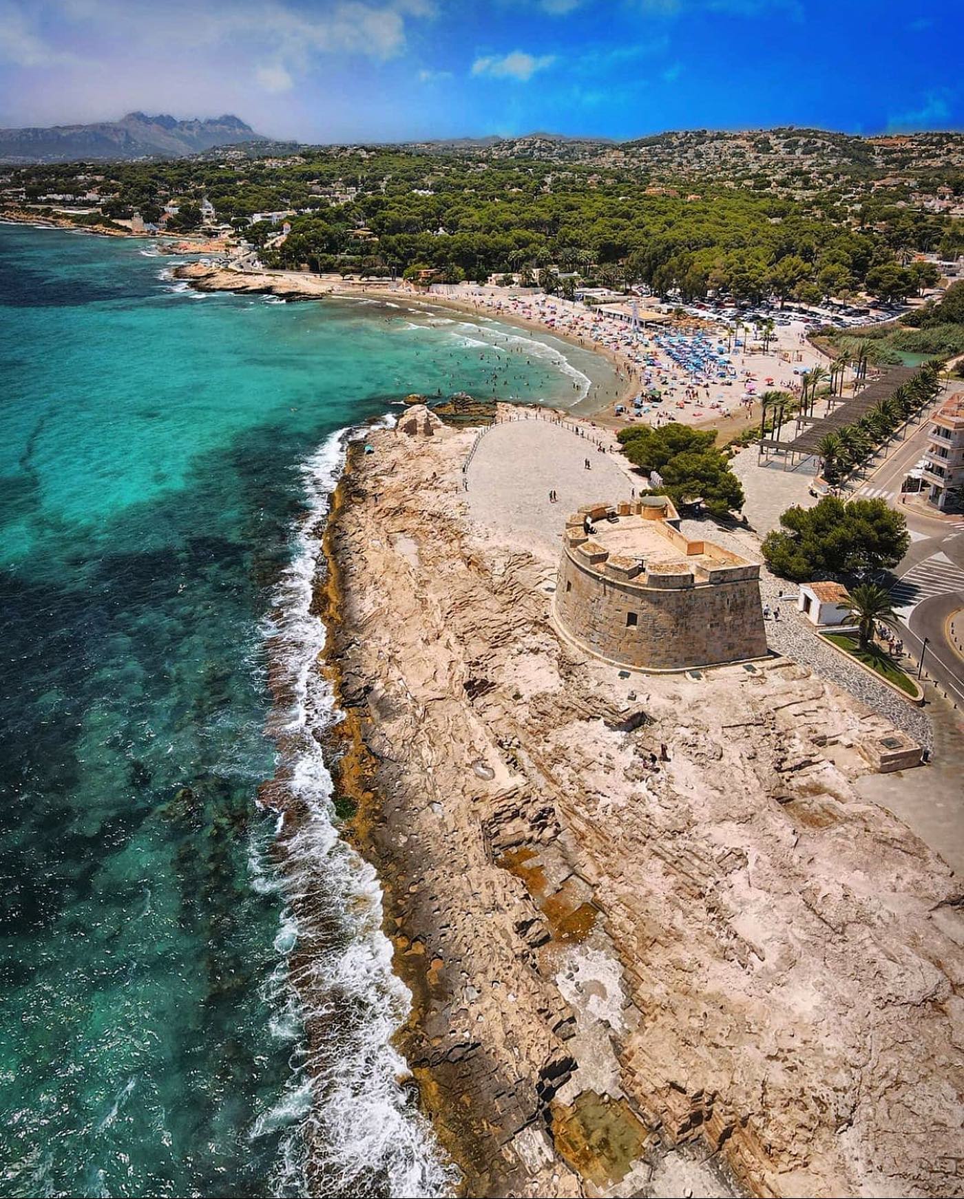 This family-friendly beach is the largest in Moraira, offering golden sands and calm waters. With lifeguards, beach bars (chiringuitos), and playgrounds, it’s perfect for a day of relaxation and fun in the sun.